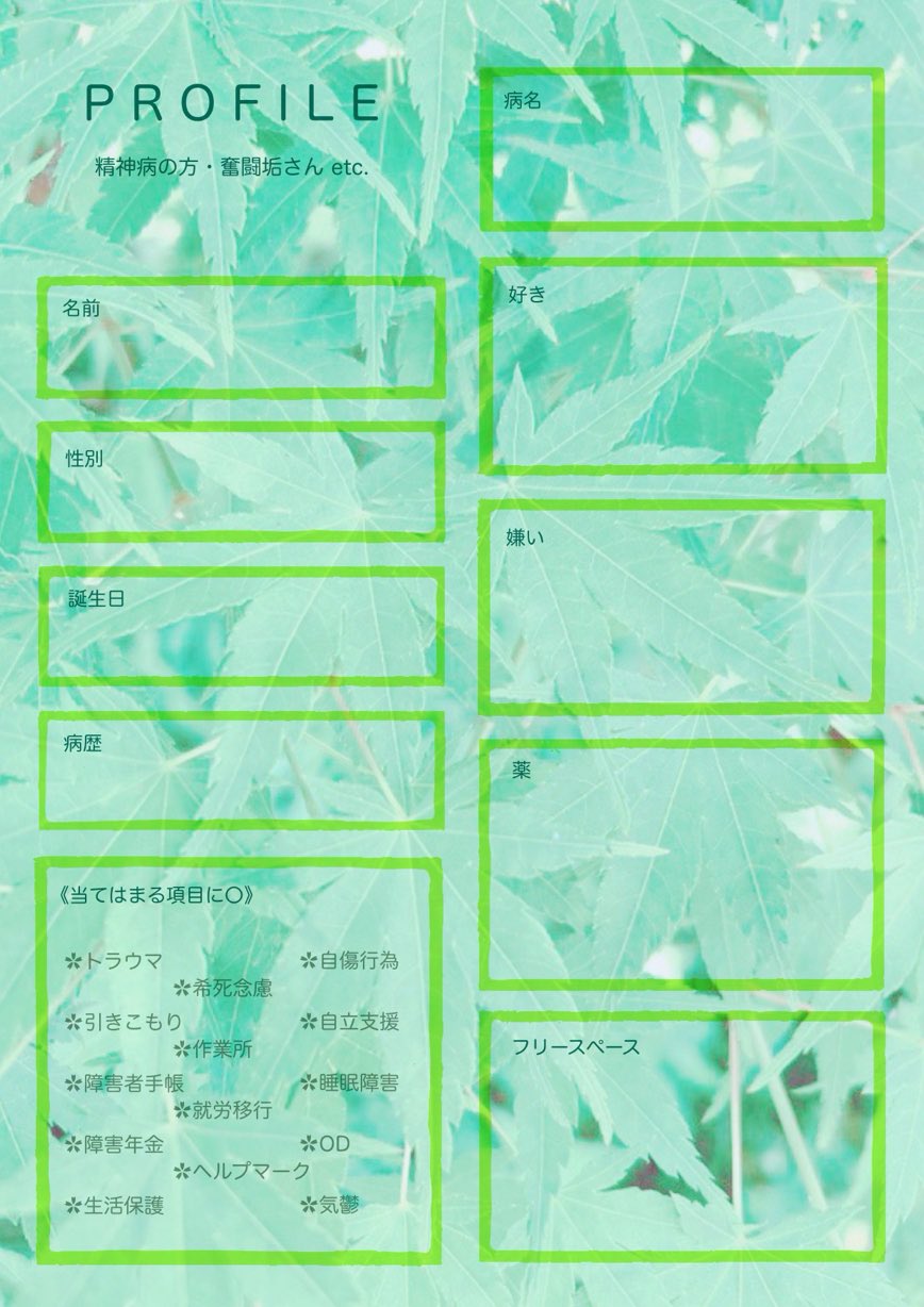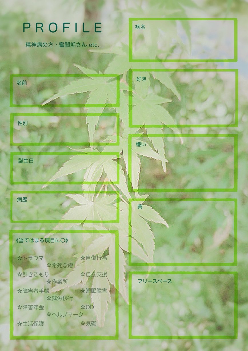 精神病の方や奮闘垢さん向けかな(* ᐕ)?